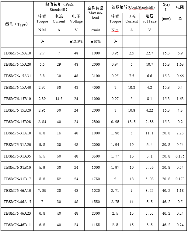TBSM76 series brushless torque motor performance indicators