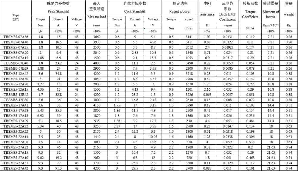 TBSM85無刷直流力矩電機 |