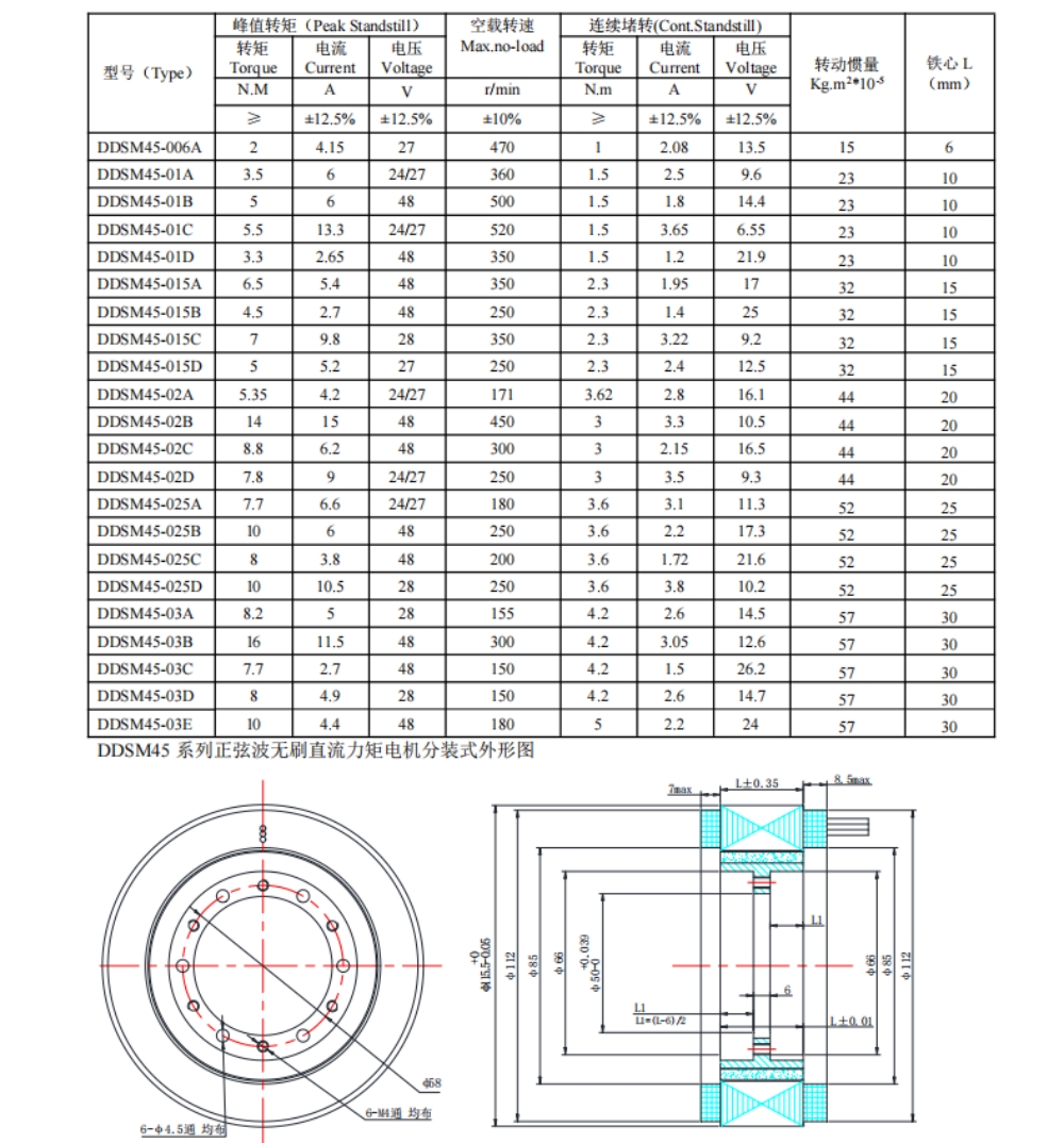 DDSM45系列無(wú)刷直流力矩電機(jī) |