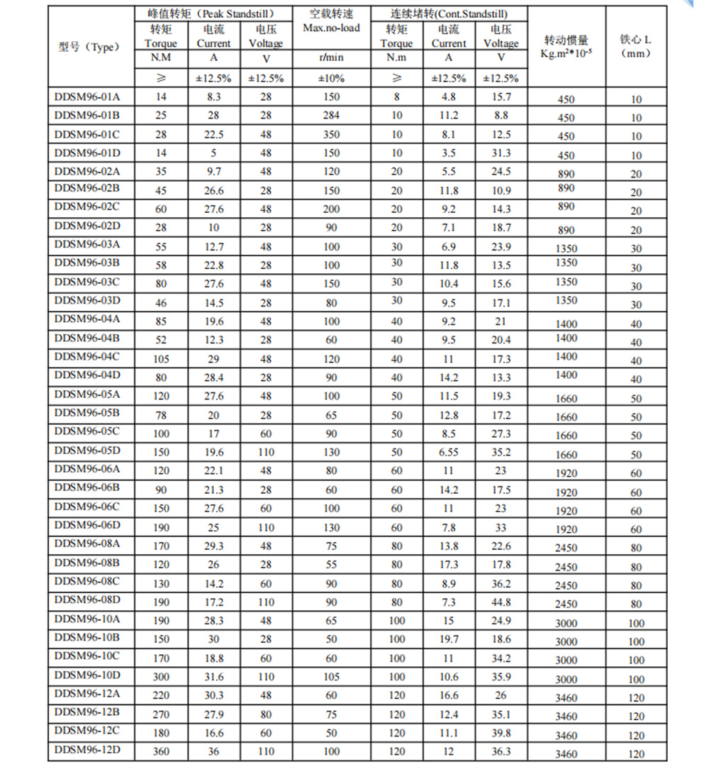 DDSM96系列無(wú)刷直流力矩電機(jī)