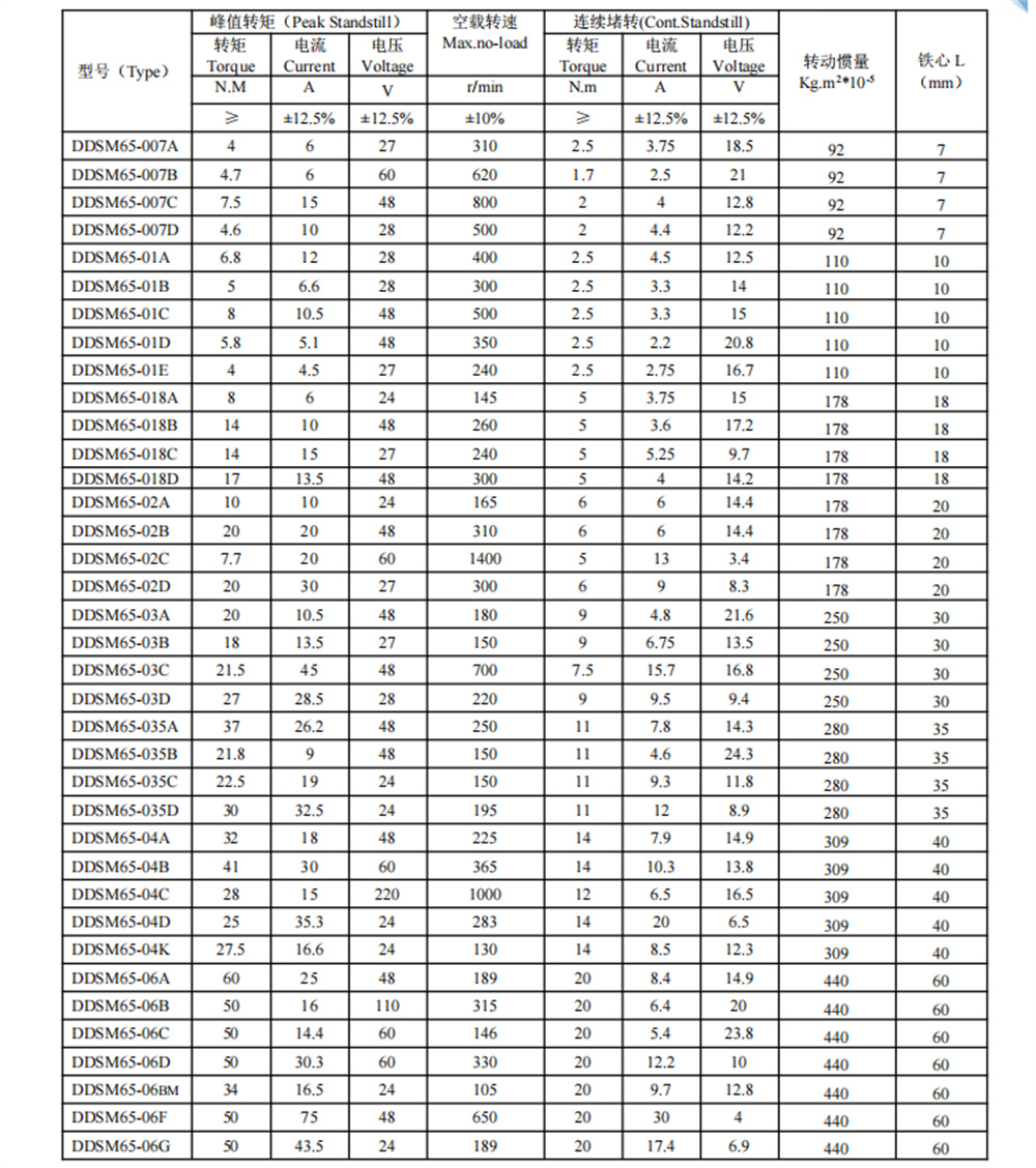 DDSM65系列無(wú)刷直流力矩電機(jī)