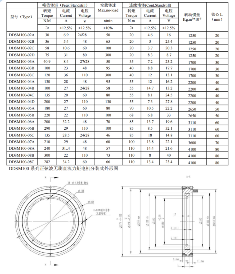 DDSM100系列無(wú)刷直流力矩電機(jī)